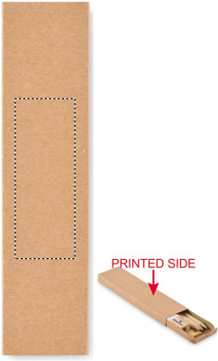 Set bestehend aus 3 angespitzten Bleistiften, 1 Anspitzer, 1 Radiergummi und 1 Holzlineal. Lieferung in einer Schachtel aus recyceltem Papier.