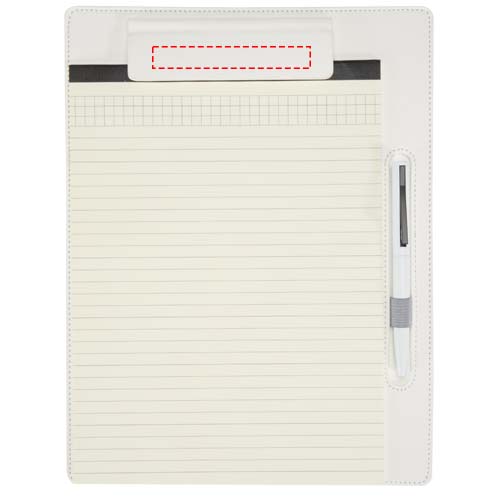Das Clast Klemmbrett kombiniert ein elegantes Design aus PU Leder mit praktischen Funktionen für Meetings und den täglichen Gebrauch. Es ist für Standard A4 Seiten geeignet und verfügt über einen Magnetclip, genähte Kanten und eine integrierte Stifthalterung. Im Inneren befinden sich 26 linierte Blätter aus 65 g/m² Papier sowie ein Kugelschreiber mit einem oberen Schaft aus recyceltem Kunststoff und einem unteren Schaft aus RCS zertifiziertem recyceltem Aluminium. Der Kugelschreiber Juana ist auch separat erhältlich. Größe des Klemmbretts: 25,5 × 33 cm. Farbe der Stiftmine: schwarz.