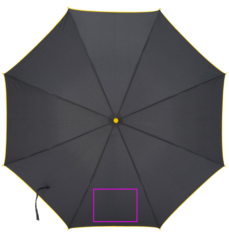 Automatik-Stockschirm aus 190T Pongee mit Fiberglasgestänge, Kunststoffgriff, farbiger Schirmkante, Griff und Gestell. Ihr Logo drucken wir auf ein Segment.
