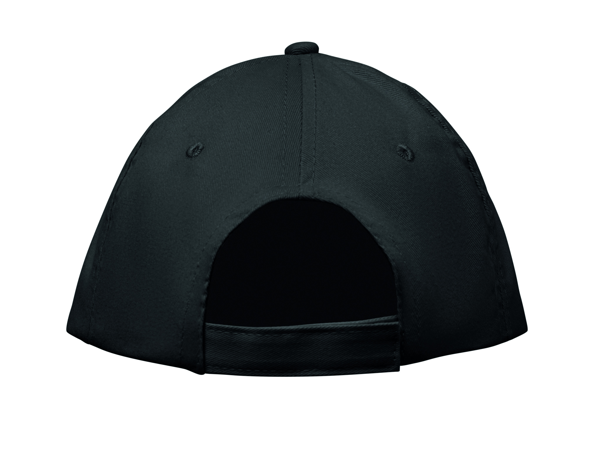 5 panel baseball cap in cotton twill 180 gr/m² with adjustable hook and loop closure.