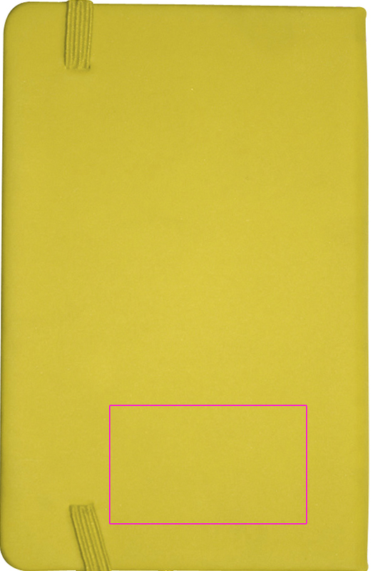 DIN A6 notebook in velvety-PU cover with 170 neutral pages. We print your logo on the cover.
