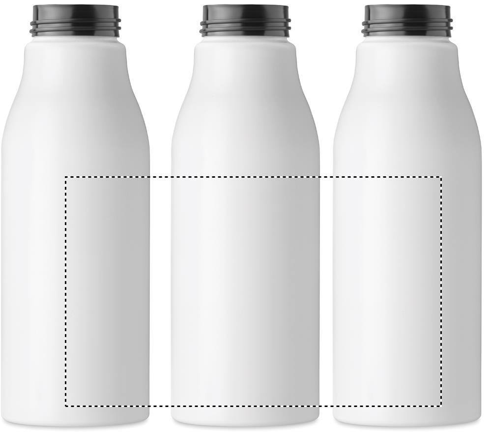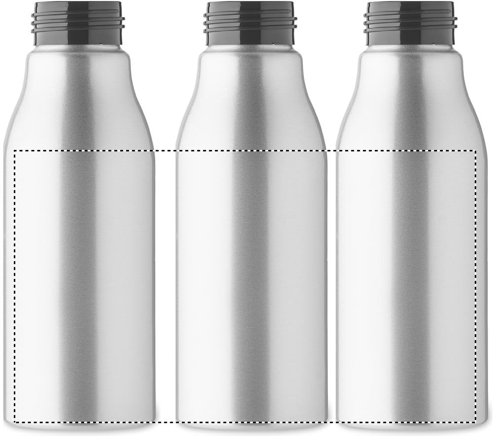Single wall aluminium bottle with ABS lid with silicone hanger. Capacity 650 ml.