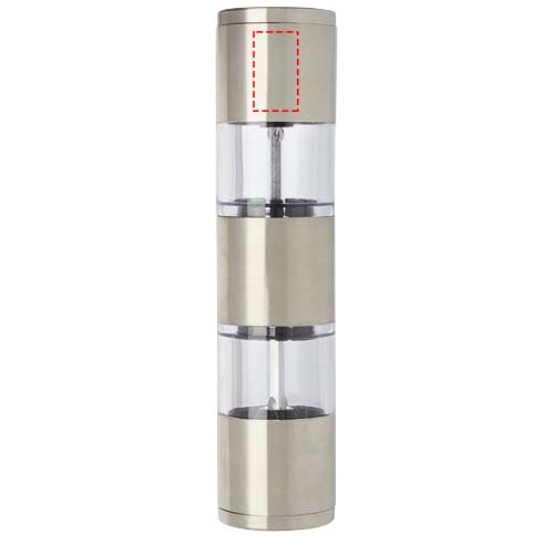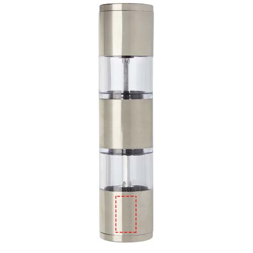 2-sided grinder with one end for salt and the other for pepper. Pepper and salt are not included.