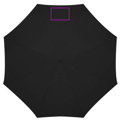 Automatic umbrella with metal frame, straight wooden handle and 170T polyester covering. Your logo will be printed on one segment.