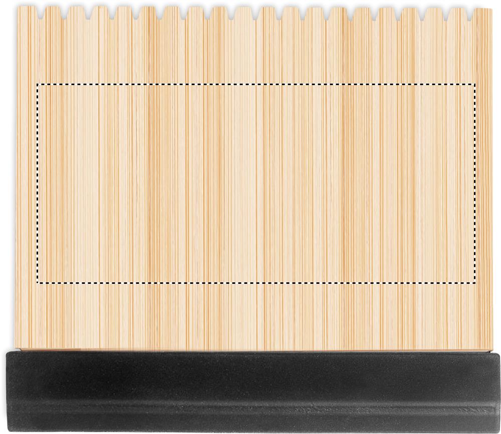 Bamboo ice scraper with one soft rubber serrated and squeegee edge. Bamboo is a natural product, there may be slight variations in colour and size per item, which can affect the final decoration outcome.