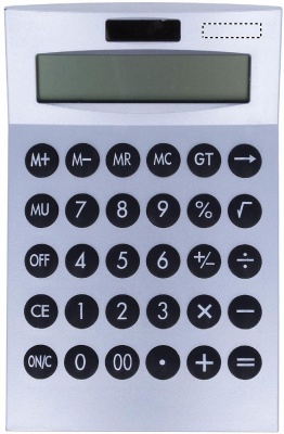 12 digit solar energy calculator with plastic housing. 1 cell battery included.
