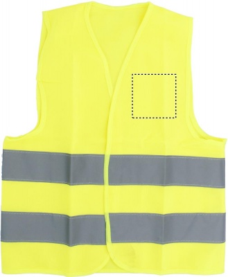 Child high visibility vest with 2 horizontal reflective bands. 100% polyester. EN17353.