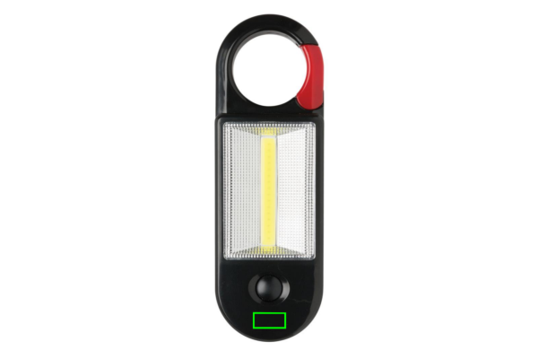 Working light with both LED light on front and ultra-bright COB light. The light has a magnet and hook to hang it where you want it. Including batteries.