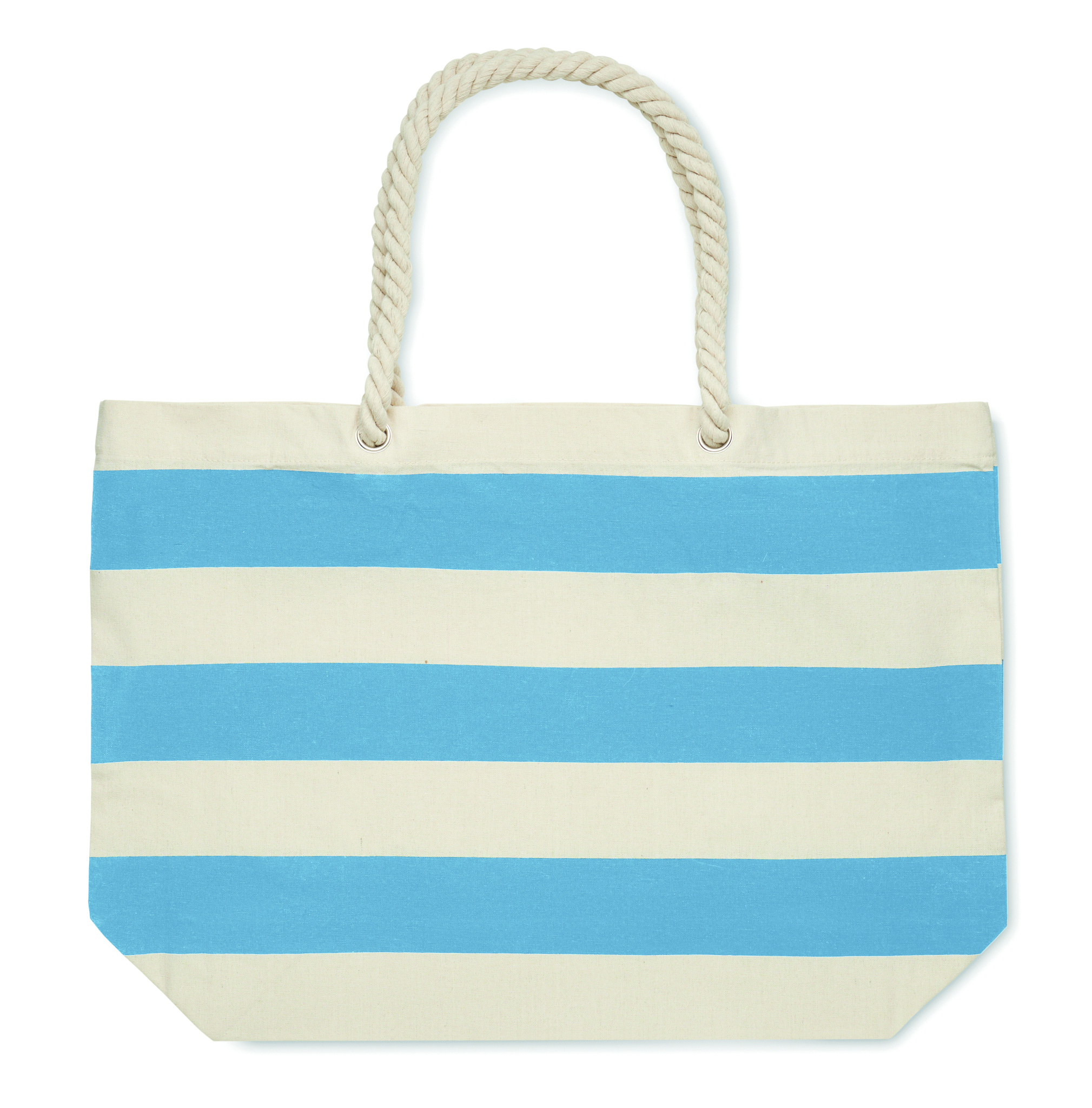 Striped beach or shopping bag in cotton with cord handle. 220 gr/m².