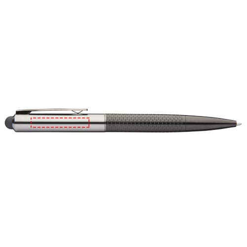 Exclusive design stylus ballpoint pen with stylish patterned lower barrel. Incl. premium quality black ink refill and packed in a Marksman gift box..