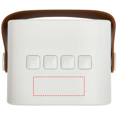 The Diya wireless speaker is made from recycled plastic and has a PU leather strap for easy portability. It delivers 3 watts of powerful sound and supports MP3 playback via Micro SD. Enjoy seamless connectivity with a line-in option and recharge effortlessly through the Type-C charging port. Playback time at max volume is approximately 3 hours and the speaker can be fully charged 0-100% in approximately 2 hours.