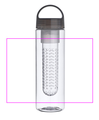 Plastic drinking bottle with infuser for (e.g.) fruits and 650ml capacity. We will print your logo on the bottle.