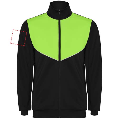 Tracksuit in lightweight and elastic fabric. Jacket with contrasting colour and sewing trims on chest. High collar with contrasting seams. Central front zip. Side pockets. 2x2 ribbed cuffs and waist. Trousers with elastic waistband and drawstring. Contrasting side piece with sewing trim. Zipped hem.