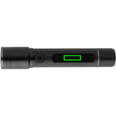 Functionality, performance and design all come together in this re-chargeable 3W torch made with RCS certified recycled aluminum. Total recycled content: 20% based on total item weight. RCS certification ensures a completely certified supply chain of the recycled materials. Because of its IP4 rating, it is weatherproof so can easily be taken outside. The powerful bulb creates up to 100 lumen and a beam that reaches up to 100 metres. The torch uses a re-chargable A-grade battery so no need to replace the batteries. Simply re-charge via your USB socket and the included RCS certified recycled type C cable. The high quality bulb comes with 5 modes including SOS function. The 500 mah battery allows a usage up to 4 hours on a single charge. Aluminum does not lose its characteristics in the recycling process and can be recycled endlessly. Item and accessories 100% PVC free. Packed in FSC mix packaging.
