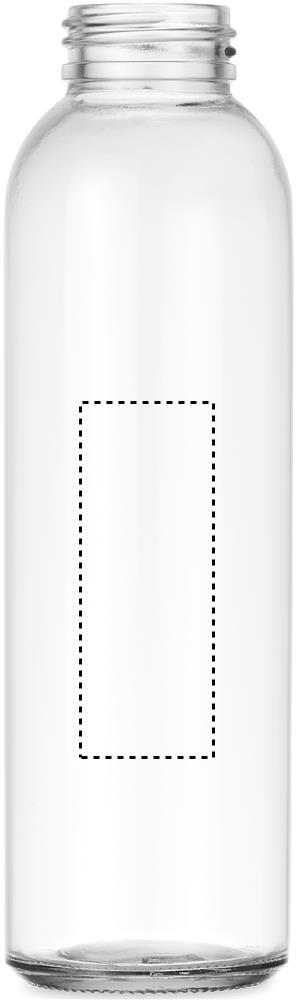 Glass bottle with bamboo lid with PU handle and RPET felt polyester pouch. Capacity: 500 ml. Bamboo is a natural product, there may be slight variations in colour and size per item, which can affect the final decoration outcome.