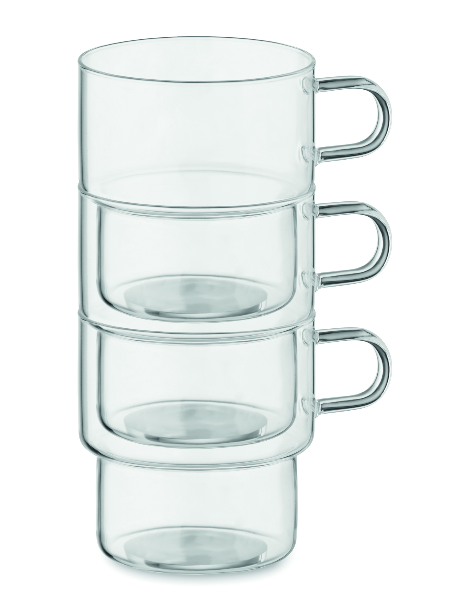 High borosilicate glass stackable mug. Capacity: 300 ml