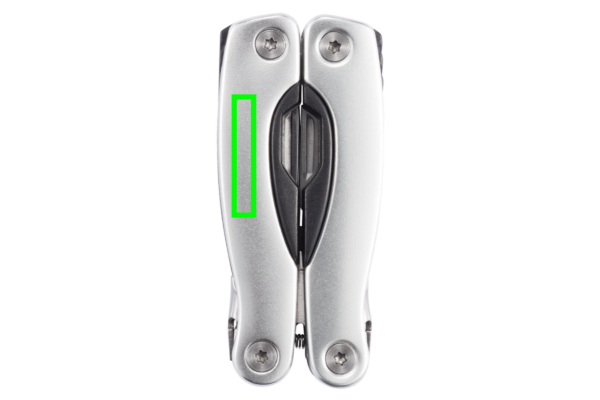 13 functions, stainless steel multitool with aluminium anodised handle. Including black pouch.