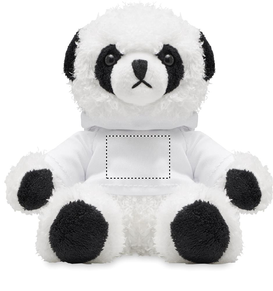 Panda bear plush wearing a hooded sweater. Ideal for sublimation print.