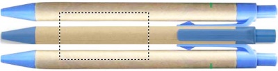 Push button ball pen with paper barrel and PLA parts (in 100% biodegradable corn). Blue ink.