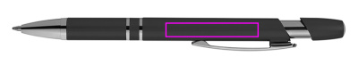Metallic-looking plastic ballpen with large capacity refill and push function. We will print your logo below the clip.