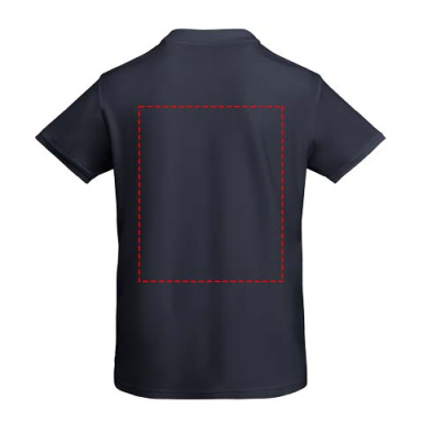 Short-sleeve polo shirt in organic cotton. 1x1 ribbed collar and sleeve edging. 2-button placket. Reinforced covered seams in collar. Side slits on hem. Optional pocket. Removable label. The model is 184 cm and is wearing size L.
