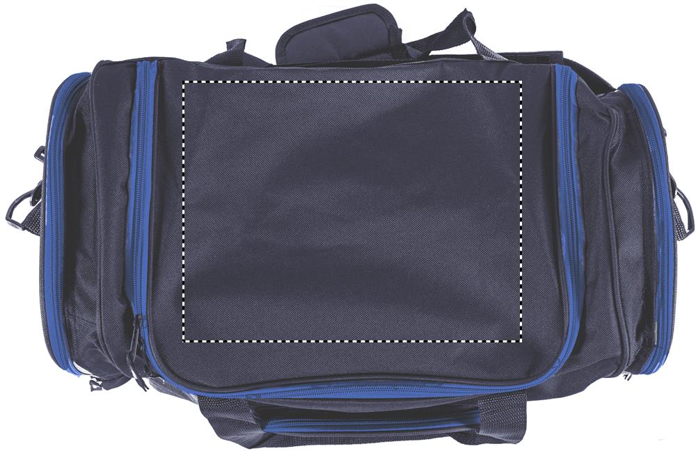 Sports bag in 600D polyester with 2 zippered side compartments and 1 zippered front pocket with earphone eyelet. Detachable and adjustable shoulder strap included.