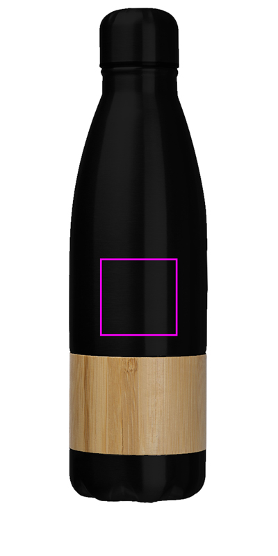 Stainless steel bottle with bamboo ring, leak-proof cap and a capacity of 750 ml. Your logo will be engraved on the bottle.