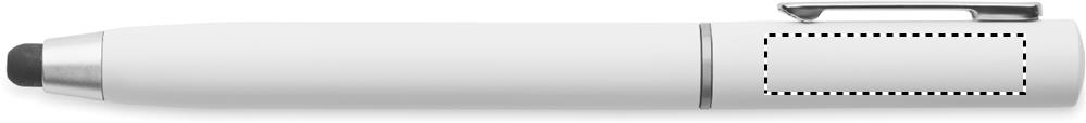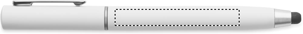 Twist action ball pen with stylus in ABS. It has a True Wireless Stereo (TWS) earbud cleaning kit: metal nib, sponge and brush. Blue ink.