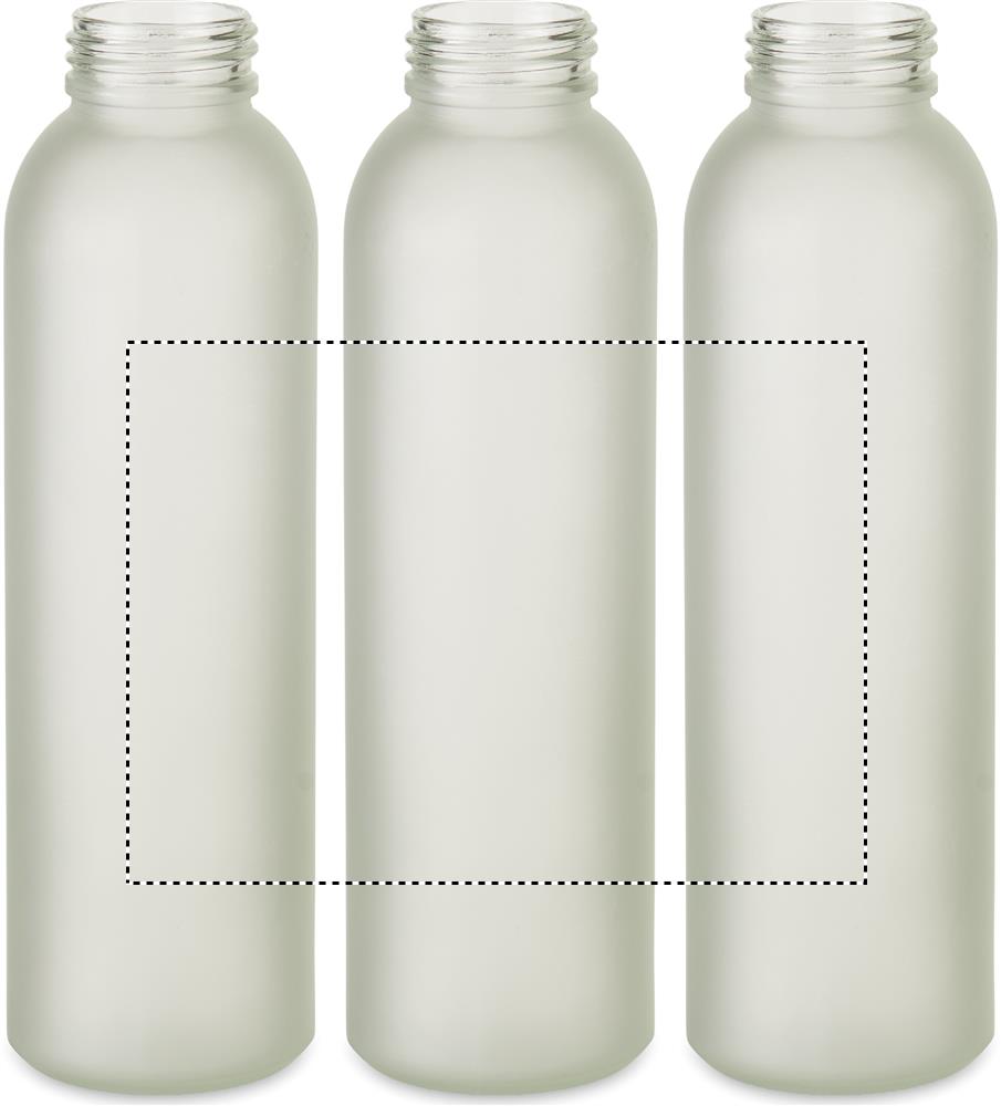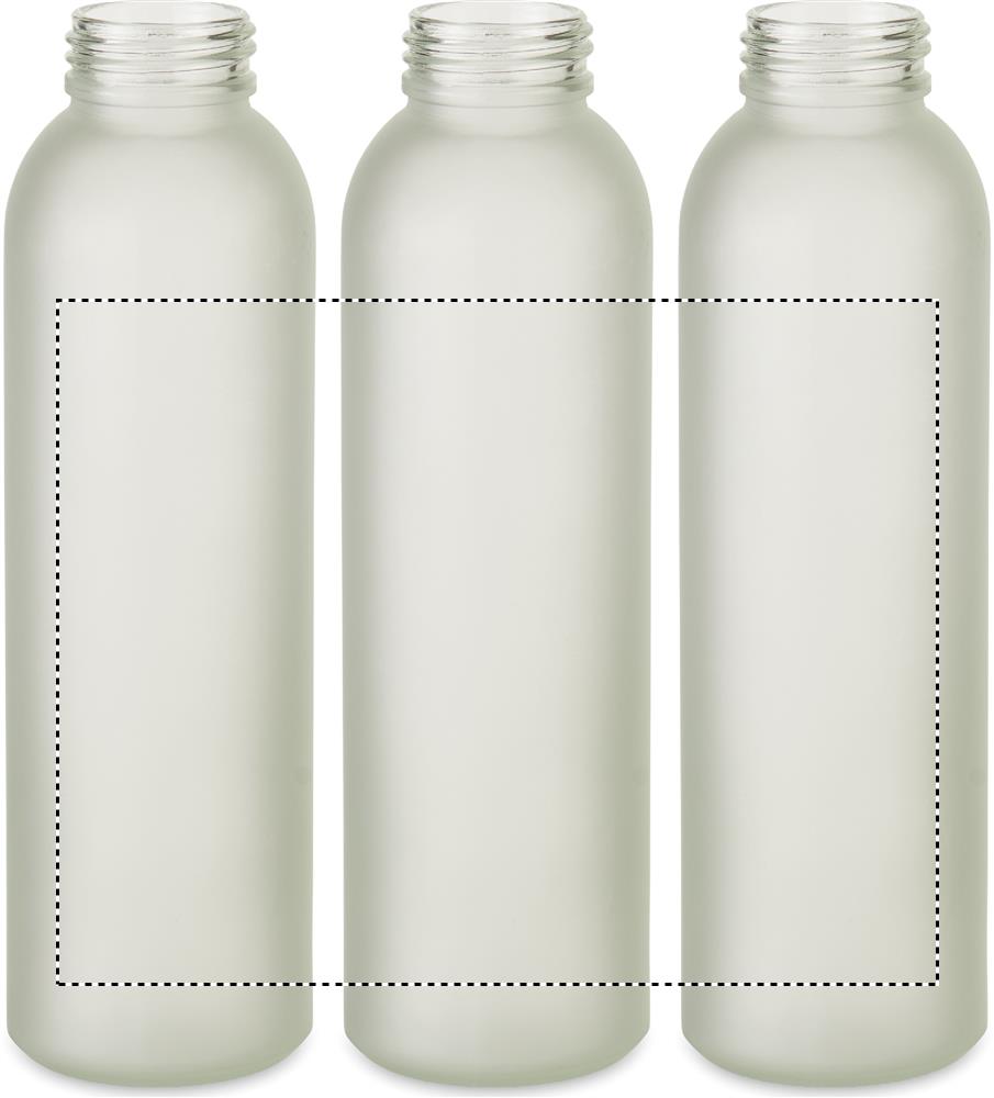 Glass bottle with special coating for sublimation. It has a stainless steel lid and hanging strap. Capacity: 500 ml.
