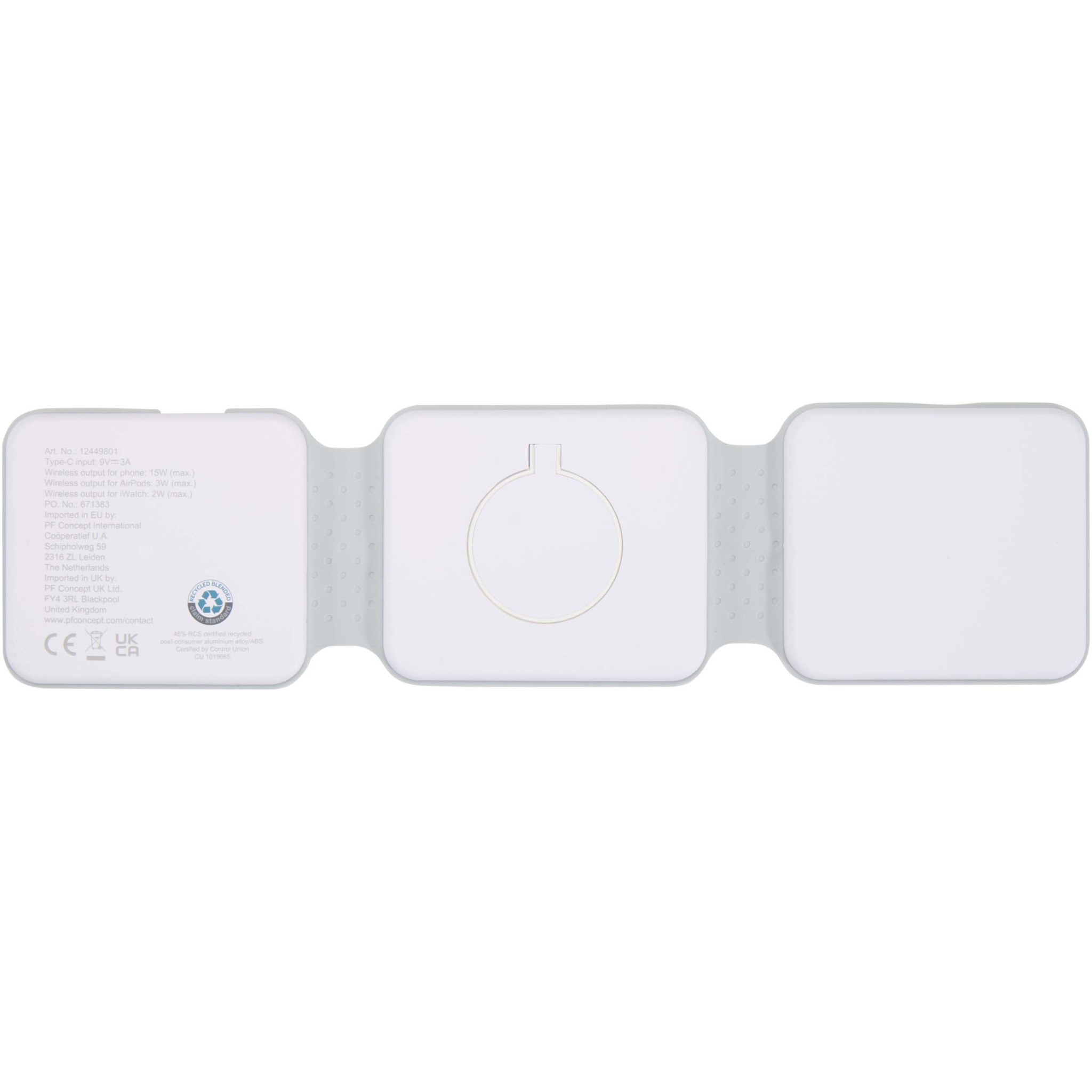 Armus 3-in-1 juhtmevaba laadija on valmistatud taaskasutatud plastist ning sellega saab korraga laadida nutitelefoni, AirPode ja iWatch'i, pakkudes kuni 15 W juhtmevaba laadimiskiirust. Selle kokkupandav ja magnetiline disain võimaldab telefoni asetada horisontaalasendisse – ideaalne laadimise ajal vaatamiseks. Ühildub kõigi juhtmevabalt laadivate telefonidega, sh iPhone 12 ja uuemate mudelitega (või magnetilise rõngaga telefonidega). Komplektis Type-C pistik.