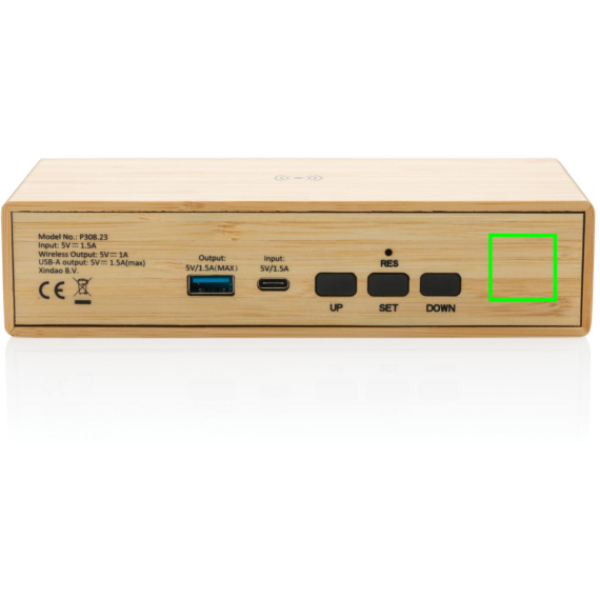 Logo trade ärikingitused foto: Bambusest äratuskell 5W juhtmevaba laadijaga