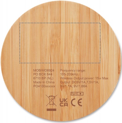 Logotrade firmakingi foto: Bambusest juhtmevaba laadija 15W