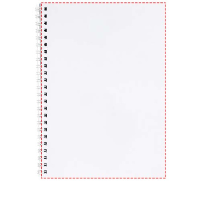 Desk-Mate® spiraalne A6 märkmik. Sisaldab 50 tühja 80 g/m2 paberilehte, läikivat kaardi esikaant (250 g/m2) ja 450 mikronit läbipaistvat polüpropüleenist katet. Must või valge traat. Saate kohandada selle mitmekülgse märkmiku lehti mis tahes kujundusega – nii et olenemata sellest, kas soovite joonelist paberit, ruute või punkte – kõik on võimalik!