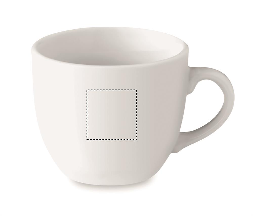 Portselanist espressotass ja alustass. Tassi maht: 80 ml. Masspakend. Tampprint ei ole nõudepesumasinas pestav. Keraamiline ülekanne on nõudepesumasinas pestav.