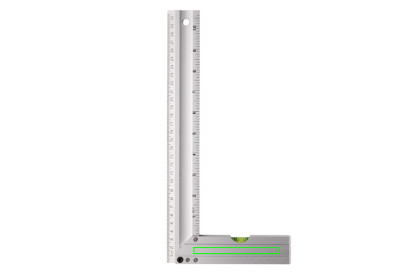 Professionaalne alumiiniumist ruudukujuline joonlaud integreeritud tasemega, mis on optimaalne nurkade mõõtmiseks ja ruutude joonistamiseks. Kahepoolne printimine indikatsiooniga CM (30) ja tollides (10) Tase Täpsus 0,5 mm