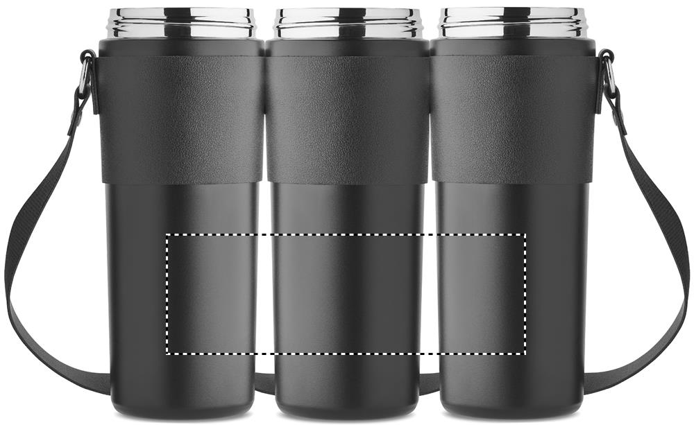 Kaheseinaline roostevabast terasest pulbervärvitud trummel PP kaanega (2-in-1 õlgedest kaas) ja PU kanderihmaga. Lekkevaba. Mahutavus: 700 ml.