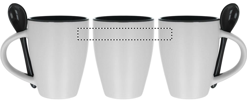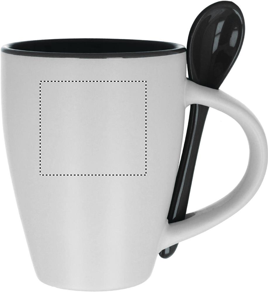 Kahevärviline keraamiline kohvikruus mahuga 250 ml koos värvisobituslusikaga. Üksikkarp 11,5x10,5x9,3cm.