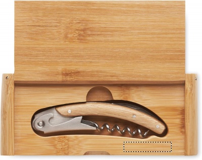 Roostevabast terasest originaal kelnernuga topeltkorgitseriga avaja ja bambuspinnaga. Esitatakse bambusest kinkekarbis. Bambus on looduslik toode, ühe eseme värvis ja suuruses võib esineda väikesi erinevusi, mis võivad mõjutada lõppviimistlust.