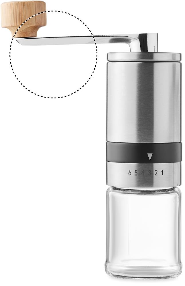 Kohvikomplekt. Kaasa arvatud klaasist ja roostevabast terasest kohviveski ning bambusdetailidega käsitsi keraamiline kohviveski. Mahutavus: kohvik 350 ml, veski 100 ml.