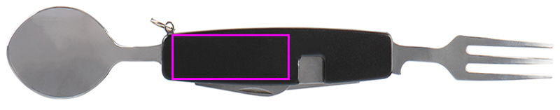 Kaheosalised roostevabast terasest matkasöögiriistad. Selle saab keskelt poolitada, nii et saate noa ja kahvli või pudeliavaja ja lusika. Graveerime teie logo ühele küljele.