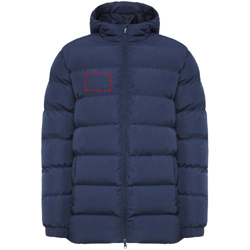 Polsterdatud spordiparka. Kapuuts tipuga. Ees tõmblukk koos sobiva tõmbaja ja lõuakaitsega. Elastsed kätised. Kaks lukuga küljetaskut. Sisemine vasak rinnatasku. Sisemine juurdepääs ümbertöötlemiseks. Eemaldatav etikett. Veekindel. Tuulekindel.