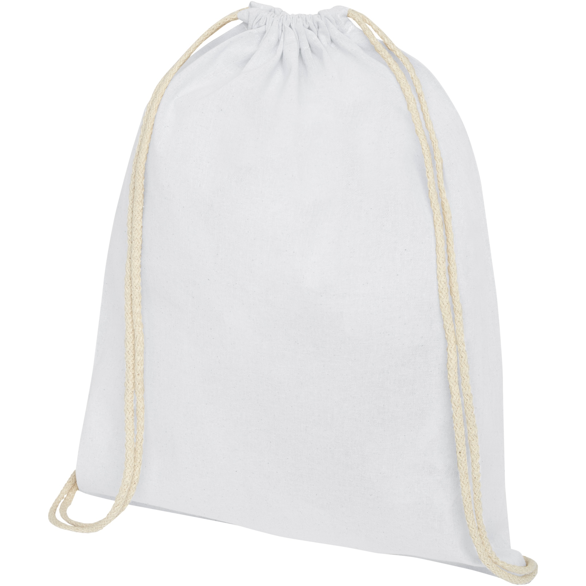 Oregon 140 g/m² puuvillane pingutusnööriga seljakott 5L, Valge