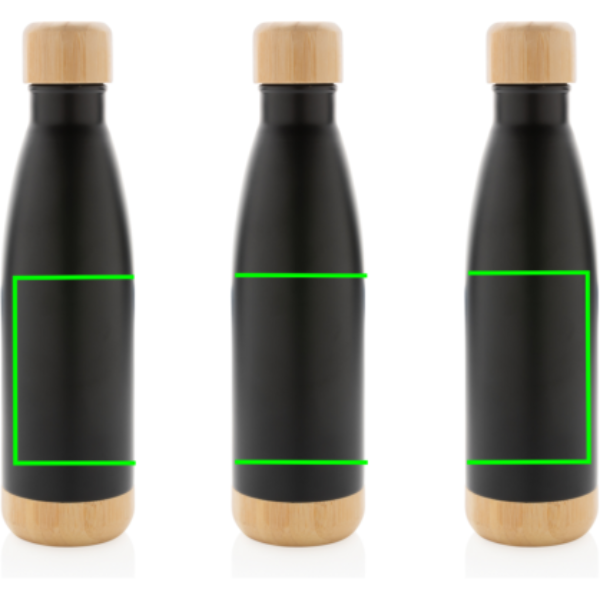 Roostevabast terasest vaakumpudel bambusest kaane ja põhjaga, must