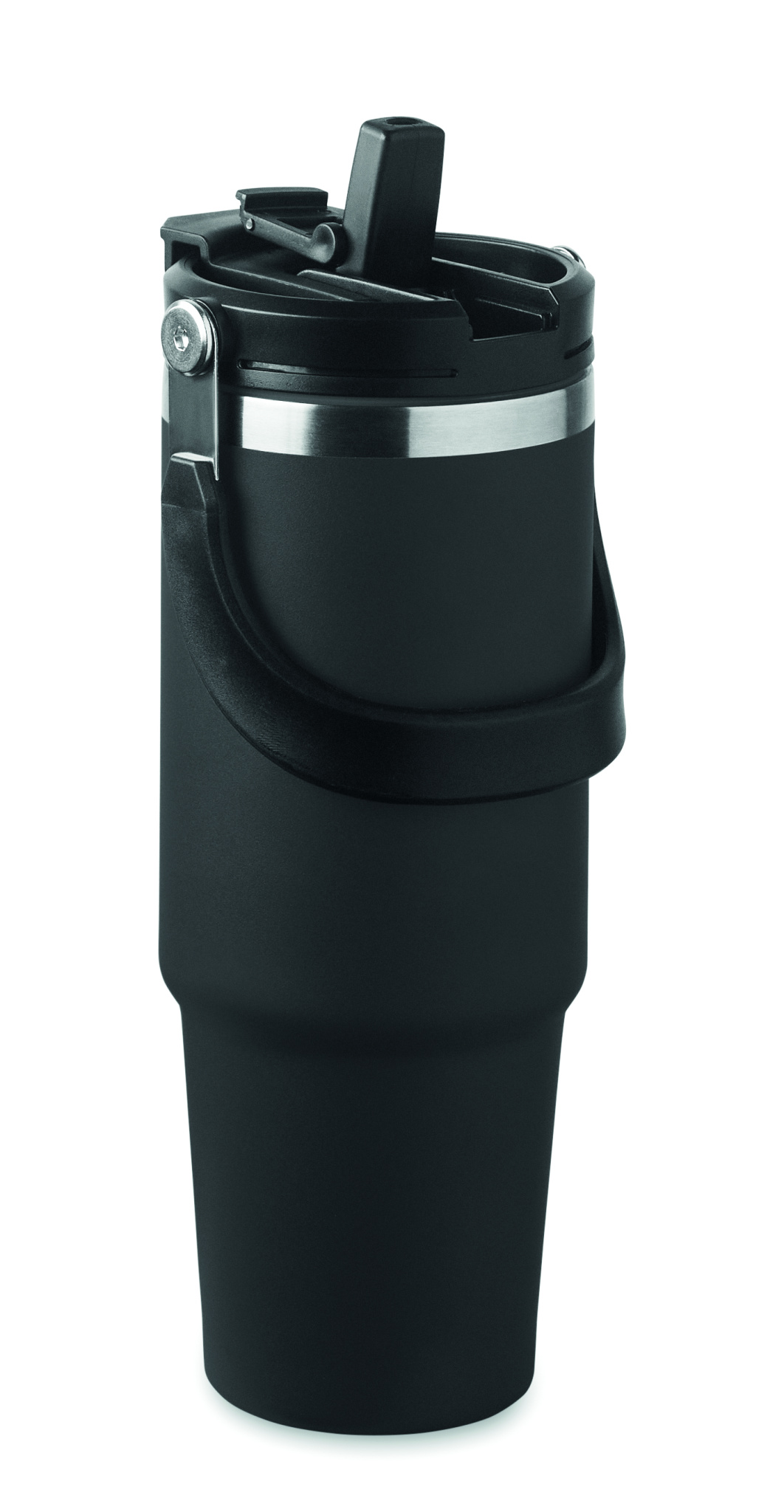 Kahekordse seinaga taaskasutatud roostevabast terasest (90% taaskasutatud roostevabast terasest ja 10% roostevabast terasest) trummel sisekõrrega kaanega, kokkupandav huulik ja otsene joogiava. Mahutavus 850 ml.