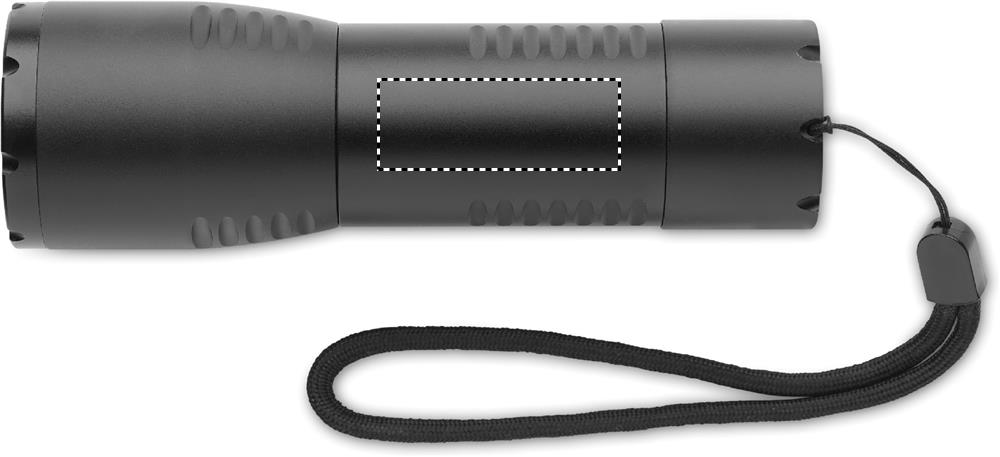 Väike alumiiniumist suumitav LED taskulamp ja eemaldatav rihm. Väljund: 200 luumenit. 3 AA patareid ei sisalda.