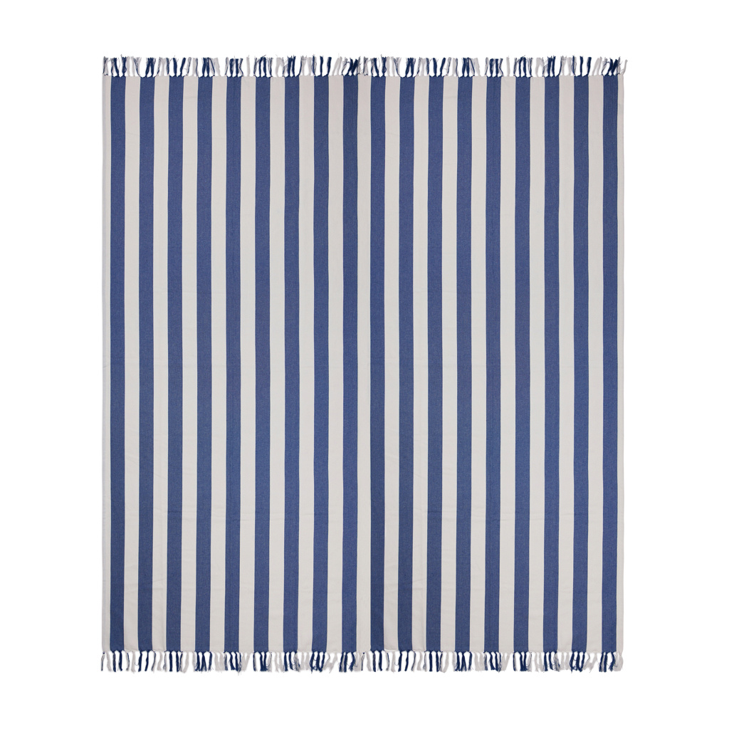 See perele mõeldud hamam-rannarätik on klassikalise kahevärvilise triibulise mustriga, mille lühemad küljed on narmastega ääristatud. Oma avarate 180 × 180 cm suuruste rätikutega on see ideaalne jagamiseks lähedastega, olenemata sellest, kas lõõgastute rannas või basseini ääres. Valmistatud kergest ja õhulisest 200 g/m² segukangast, ühendab see puuvilla mugavuse polüestri kiirelt kuivava omadusega. GRS-i (Global Recycled Standard) sertifitseeritud GRS-sertifikaat tagab, et kogu taaskasutatud materjalide tarneahel on sertifitseeritud. Taaskasutatud materjalide kogusisaldus põhineb toote kogukaalul. Toode sisaldab 70% GRS-sertifitseeritud taaskasutatud puuvilla ja 29% GRS-sertifitseeritud taaskasutatud polüestrit.