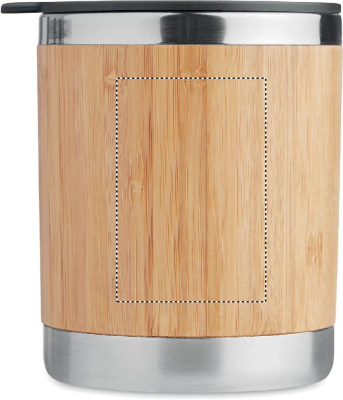 Kaksiseinäinen ruostumattomasta teräksestä valmistettu 250 ml take away muki, bambu kuorella. Luonnollisen materiaalin (bambu) vuoksi, tuotteiden värissä/ koossa saattaa olla erinäisyyksiä ja tämä voi vaikuttaa painatuksen lopputulokseen.