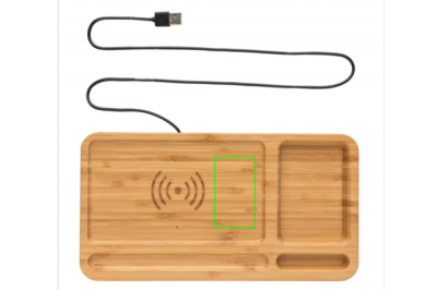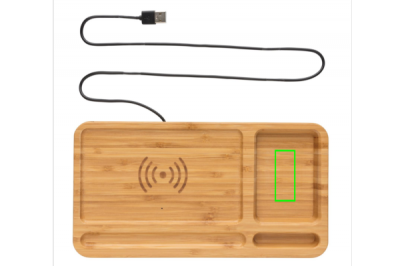 Logo trade mainostuote kuva: Bambuinen 10W langaton laturi työpöytäjärjestelijällä