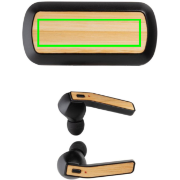 Logo trade liikelahja mainoslahja tuotekuva: Bambuiset free flow -kuulokkeet kotelossa