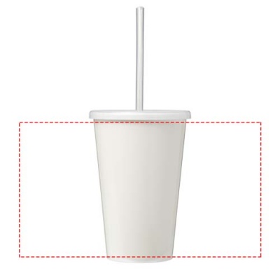 Kaksiseinäinen eristetty muki. Mukin ulkokerros on valmistettu kierrätysmuovista. Mukia ympäröi täysiväripainatus, joka on pitkäikäinen ja kestävä. Mukana PE pilli. Tilavuus on 350 ml. Valmistettu Isossa-Britanniassa. Pakattu kompostoituvaan pussiin. BPA-vapaa.
